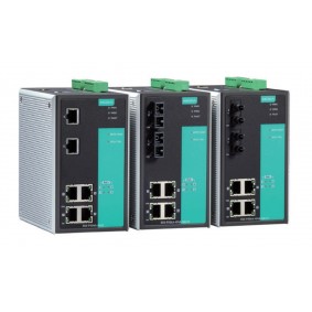 Switch Ethernet PoE administrado con 4 puertos PoE 10/100BaseT (X) y 2 puertos multimodo 100BaseFX con conector SC, -40 a 75C.
