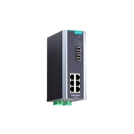 Switch Ethernet de rail DIN administrado IEC 61850-3, con 6 puertos 10 / 100BaseT (X) y 2 puertos multimodo 100BaseFX con conectores LC, 1 fuente de alimentación aislada (88-300 VCC o 85-264 VCA), -40 a 85 ° C temperatura de funcionamiento.